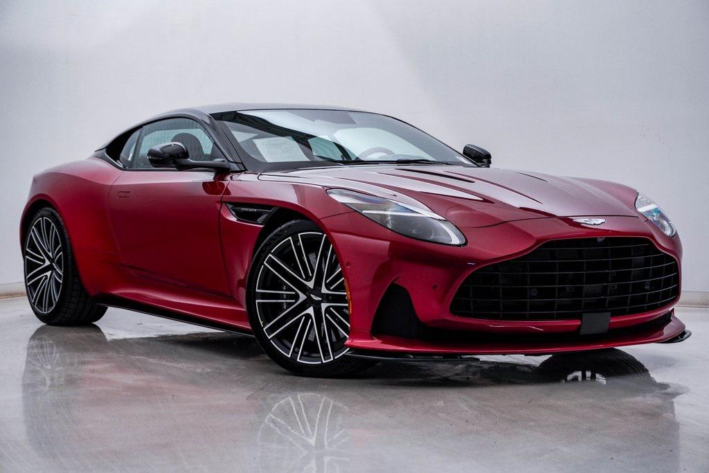 Aston Martin DB12 finished in stunning Hyper Red paintwork. The interior is upholstered from Black & Oxford Tan leathers featuring contrast stitching & extensive carbon fiber trim. Never-before registered factory demonstrator now offered as Timeless Certified with factory warranty until August 2026. DB12 is the quintessential grand tourer bred with supercar DNA. It's refinement and elegance is pure grand tourer. Yet, it's dynamic agility and torque-rich engine are pure super tourer. The 671hp twin-turbocharged V8 is capable of propelling the DB12 to 202mph. Yet, the quilted and finely detailed interior is capable of cosseting in truly grand style. DB12 is Bolder. Finer. Fiercer. Purer.This DB12 was exceptionally commissioned with,-1,170W Bowers & Wilkins Audio -Carbon Ceramic brakes with Black calipers -Carbon Fiber lower bodypack -Carbon Fiber upper bodypack -Carbon Fiber roof -Carbon Fiber seatbacks -Carbon Fiber interior trim -Carbon Fiber interior jewellery -Heated & Ventilated seats-Extended quilted leather-Embroidered headrests-Smoked taillights-Apple CarPlay-Touchscreen interface-Surround view cameras-Advanced Driver assist-Adjustable suspension-21"" Forged wheels