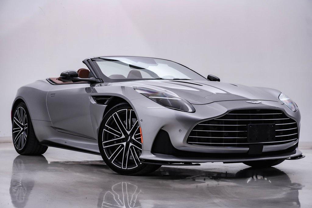 Aston Martin DB12 Volante finished in Spirit Silver paintwork. The interior is upholstered from Saddle Tan soft-grain leather featuring quilted seats & carbon fiber trim. DB12 is the quintessential grand tourer bred with supercar DNA. It's refinement and elegance is pure grand tourer. Yet, it's dynamic agility and torque-rich engine are pure super tourer. The 671hp twin-turbocharged V8 is capable of propelling the DB12 to 202mph. Yet, the quilted and finely detailed interior is capable of cosseting in truly grand style. DB12 is Bolder. Finer. Fiercer. Purer.This DB12 has been exceptionally commissioned with,-Black Aero Pack -Heated & Ventilated seats-Heated steering wheel-Extended quilted leather-Embroidered headrests -Carbon Fiber interior trim -Satin Chrome interior jewellery-Smoked taillights-Apple CarPlay-Touchscreen interface-Surround view cameras-Advanced Driver assist-Adjustable suspension-21"" Forged wheels